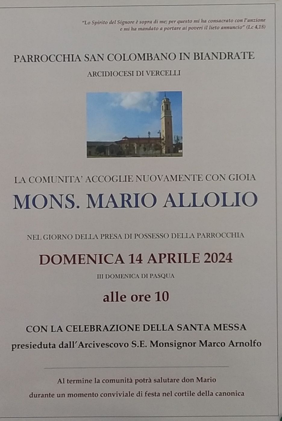 La comunità accoglie nuovamente con gioia Mons. Mario Allolio